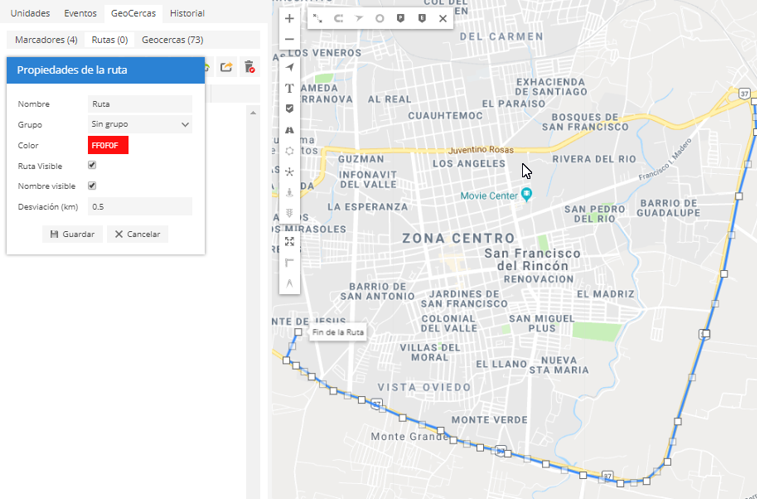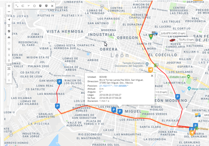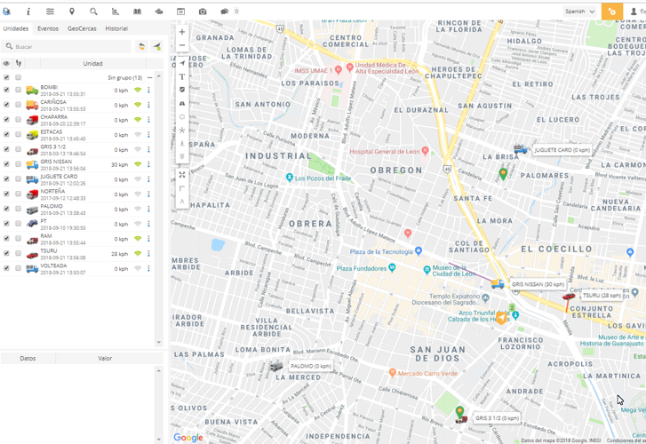 Se pueden crear geocercas para mejorar el control de las unidades.