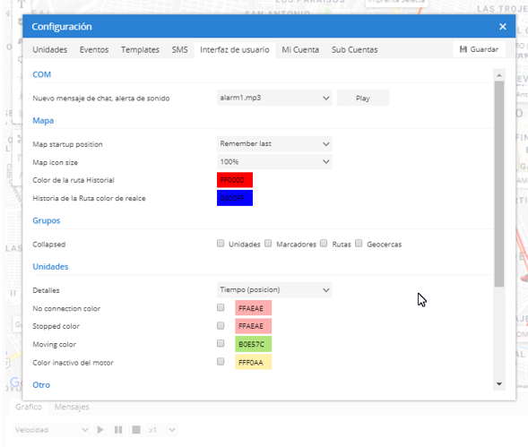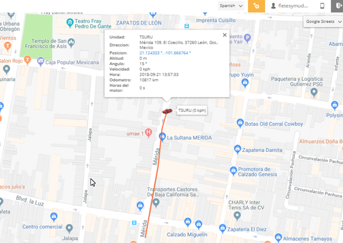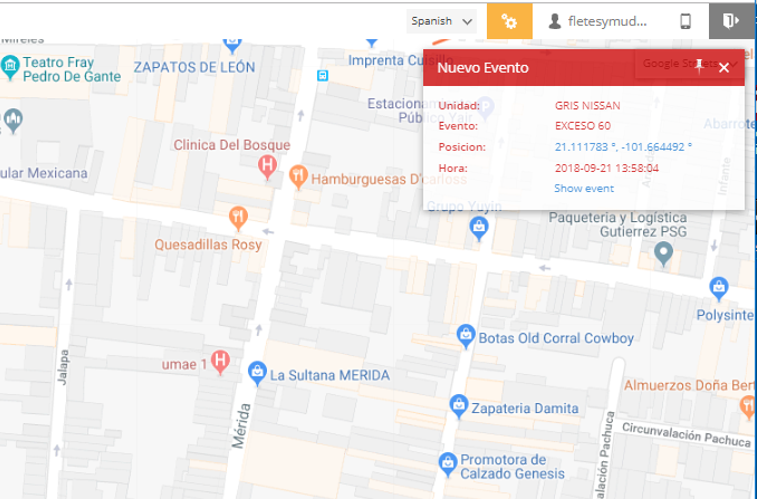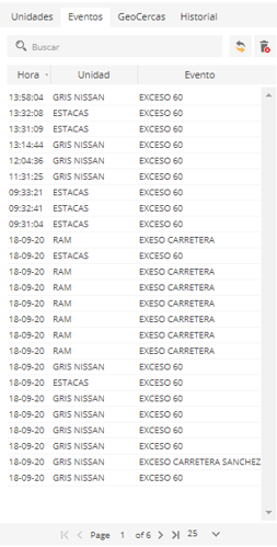 Visualiza alertas de las unidades como; exceso de velocidad, corte de corriente, entrada/salida de zonas, etc.
