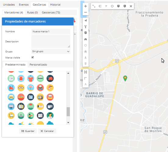 Puede crear marcadores sobre el mapa para localizar visualmente más rapido puntos importantes.