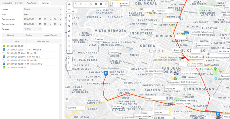 Se puede generar el historial de cada unidad definido por fecha y hora.