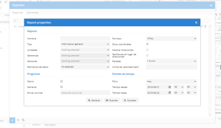 Genera reportes de alertas como; exceso de velocidad, corte de corriente, paradas, etc.